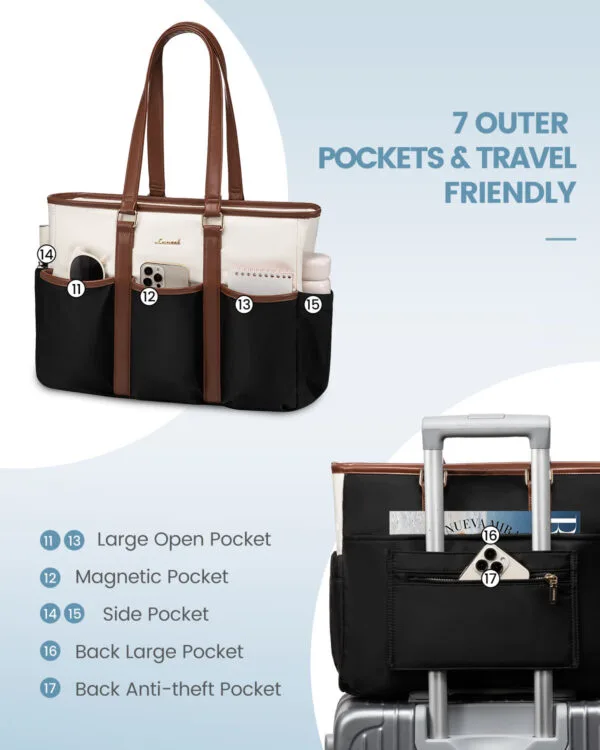 Esta es una de las incorporaciones más funcionales y versátiles de nuestra selección curada: un bolso impermeable mujer de gran capacidad fabricado en poliéster impermeable tanto en el exterior como en el forro interno, lo que protege todo lo que llevás adentro del agua, la humedad, las salpicaduras y la lluvia sin agregar peso innecesario. Sus asas cortas firmes le dan una silueta definida y un porte elegante al llevarlo en la mano o en el brazo. Con 60 x 50 x 40 cm tiene una capacidad generosa que no se nota a simple vista gracias a su diseño limpio. Disponible en tres variantes: negro liso para las que prefieren lo clásico e infalible, una combinación de beige, camel y negro para un look más cálido y con personalidad, y blanco para las que eligen frescura y luminosidad en su accesorio.
