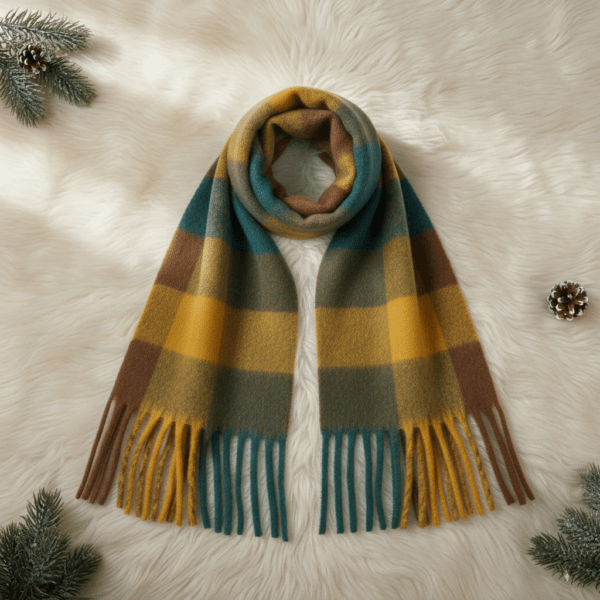 Usala como bufanda tradicional en los días de frío directo, envolvela en capas para más abrigo, dejala caer sobre los hombros como chal en los días de media estación donde el viento aparece de golpe, o doblala en forma de maxi bufanda volumétrica cuando querés que el accesorio sea el protagonista del look. Es perfecta para el invierno urbano, para la oficina, para los fines de semana al aire libre, para los viajes en los que el clima es impredecible y para cualquier día en que querés llegar cómoda y llegar bien. Combina con tapados lisos, camperas puffer, sweaters tejidos, jeans y botas, con conjuntos monocromáticos donde la bufanda aporta el color y la textura que falta, y con looks más formales donde el cuadro clásico equilibra sin romper la armonía. Es también una de las opciones de regalo más acertadas para mujeres de cualquier edad y estilo: útil, elegante, femenina y de calidad visible desde el primer momento en que se abre.